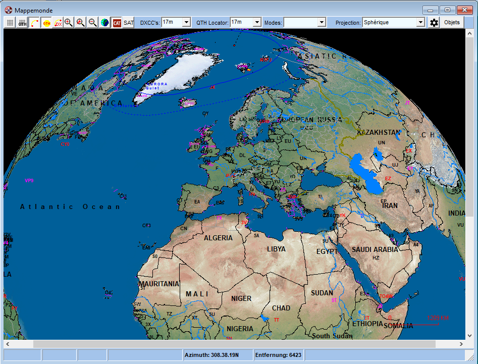 Les informations DXCC ne sont affichées qu'à partir d'un certain niveau d'agrandissement.