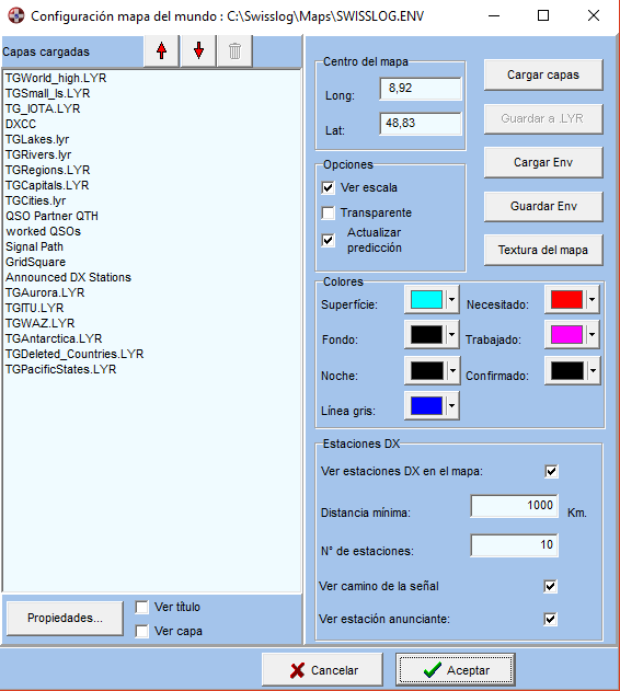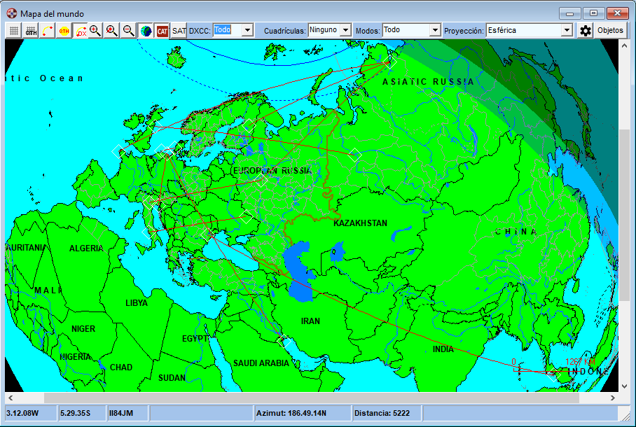 El mapa puede mostrar el estado de las QSL para los DXCC /