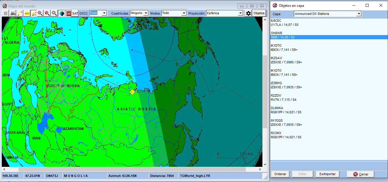 Se puede ver el estado del DXCC en el mapa. "Confirmado"