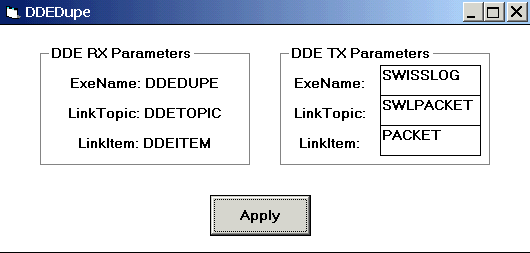 Note: under Windows NT, 2000 and XP the utility DDEdupe is needed to connect to SWISSLOG. It is contained in the DX-Telnet package and must run in parallel With DX-Telnet.