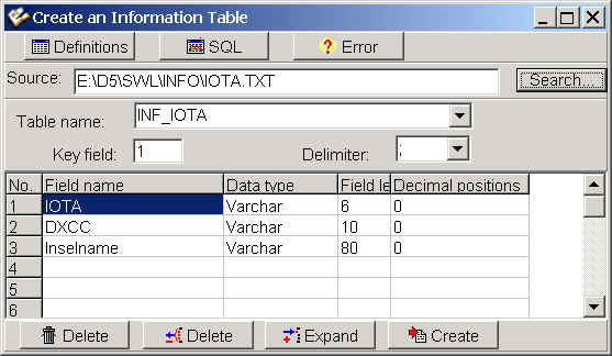 As you see, it contains 3 fields separated with a ";". The first field is again the key field, the IOTA abbreviation. The second field is the DXCC abbreviation and the third field the name of the island.