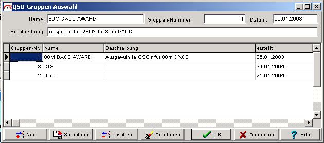 Es wird der QSO-Gruppen Auswahl