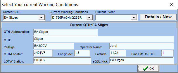Now select the My QTH for the QSOs you are going to import.