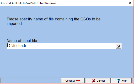 in SWISSLOG. You can only import QSOs for the same My QTH in one run.