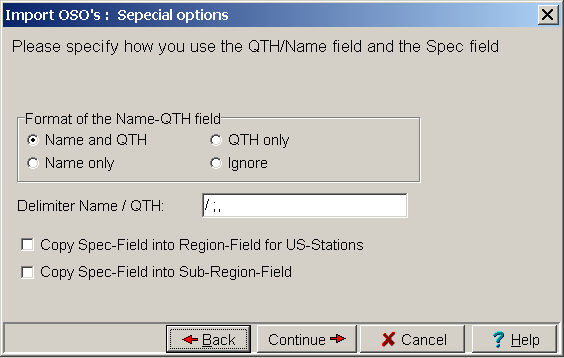 Start the import process by selecting File ¦ Import QSOs and select the import function corresponding to the file type. This will display the following dialog window: