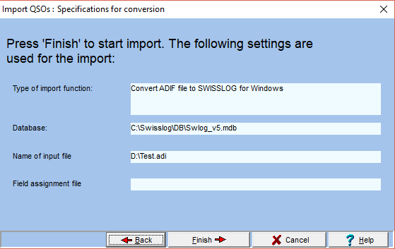 Before attempting to import any QSOs into SWISSLOG it's very important to