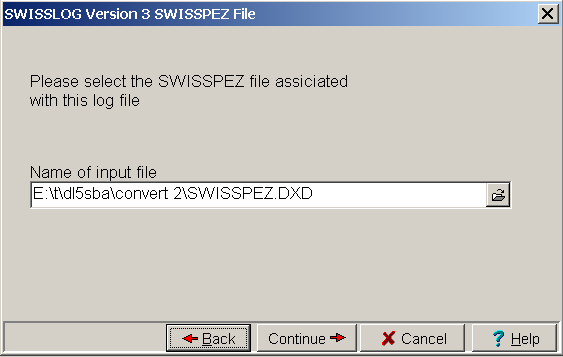 When asked for the SWISSPEZ file look for it in the directory where you installed the DOS version of SWISSLOG. The directory is typically named: \SWISPROG. Select the file SWISSPEZ.DXD. This file contains the manually assigned DXCCs – some of the DXCC's need special conversion. These conversions are stored in the file named: SWISSLOG\Info\DXDOSWIN.txt.