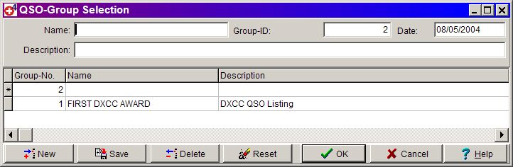 Using the QSO-Group Selection dialog window, select the group you want to add QSO's to.