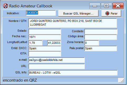 - Si desea ver si hay un QSL mánager pulse el botón Buscar QSL Mánager