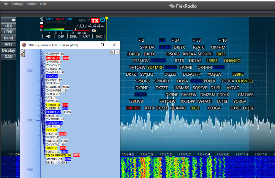 El mapa de banda de WSJT-X / JTDX / MSHV es también muy útil para conocer la frecuencia de split al trabajar estaciones DX. Puede comprobar fácilmente si está escuchando el corresponsal del QSO de la estación DX para conocer la frecuencia de split para ese QSO.