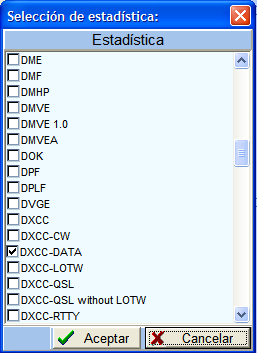 ¡Selección de cualquier estadística! Por defecto es DXCC-DATA pero el usuario puede seleccionar cualquier estadística disponible