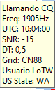 Si la estación está llamando CQ a una dirección específica como EU, AS, JA, ZL, etc. se mostrará precediendo al indicativo (Ejemplo: CQ JA EA3GCV).