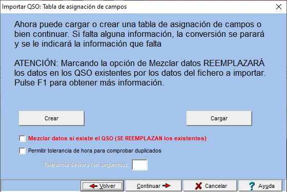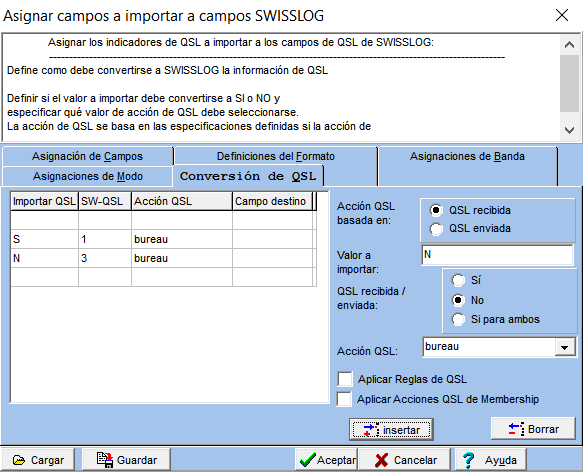 En la parte derecha puede definir como deben convertirse los valores de los campos de QSL a importar.