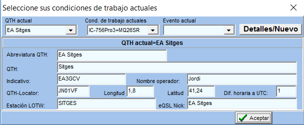 Ahora hay que seleccionar a qué QTH propio va a importar los QSO.