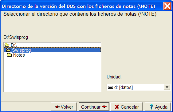 Nota: Esta ventana se ve diferente si está importando desde la versión del DOS de SWISSLOG. Vea más detalles haciendo clic aquí.