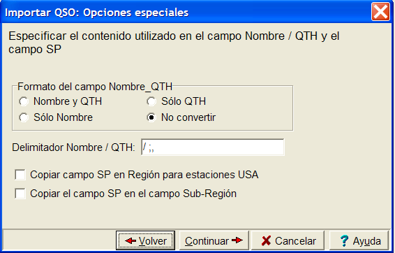 Vaya a Fichero ¦ Importar QSO... y el tipo de fichero que desee importar. Aparecerá el siguiente cuadro de diálogo: