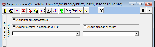Al recibir una tarjeta QSL, se puede asignar la acción de QSL automáticamente en la ventana para Registrar tarjetas QSL