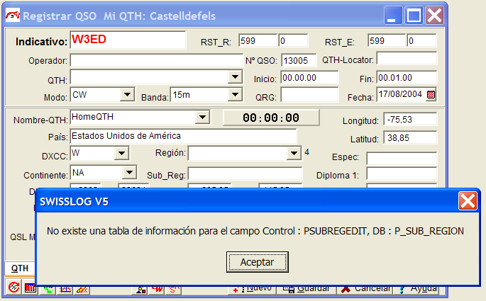 Si ha desactivado estas 2 estadísticas e introduce una estación norteamericana, no podrá seleccionar el condado de la lista (verá el mensaje de error de la imagen superior al hacer doble clic en el campo Sub-región) y tendrá que encontrar y teclear el nombre del condado usted mismo.